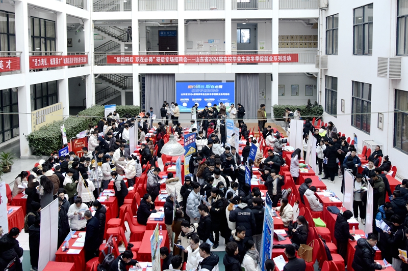 “人生道路千万条,不只考研这一条”“C位以待,职等你来”……12月26日,由山东省人力资源和社会保障厅、教育厅主办,青岛市人力资源和社会保障局、西海岸新区人力资源和社会保障局协办,8040威尼斯最佳登录承办的“相约‘研’后,‘职’在必得”的研后专场招聘会拉开帷幕,给寒冷的冬天再添就业热度。许多刚走出研究生考试考场的毕业生拿好简历,迅速踏上了另一场重要的“征程”。招聘会上,200多家用人单位提供1862个就业岗位累计招聘万人,5000人次入场求职,初步达成就业意向近千人。