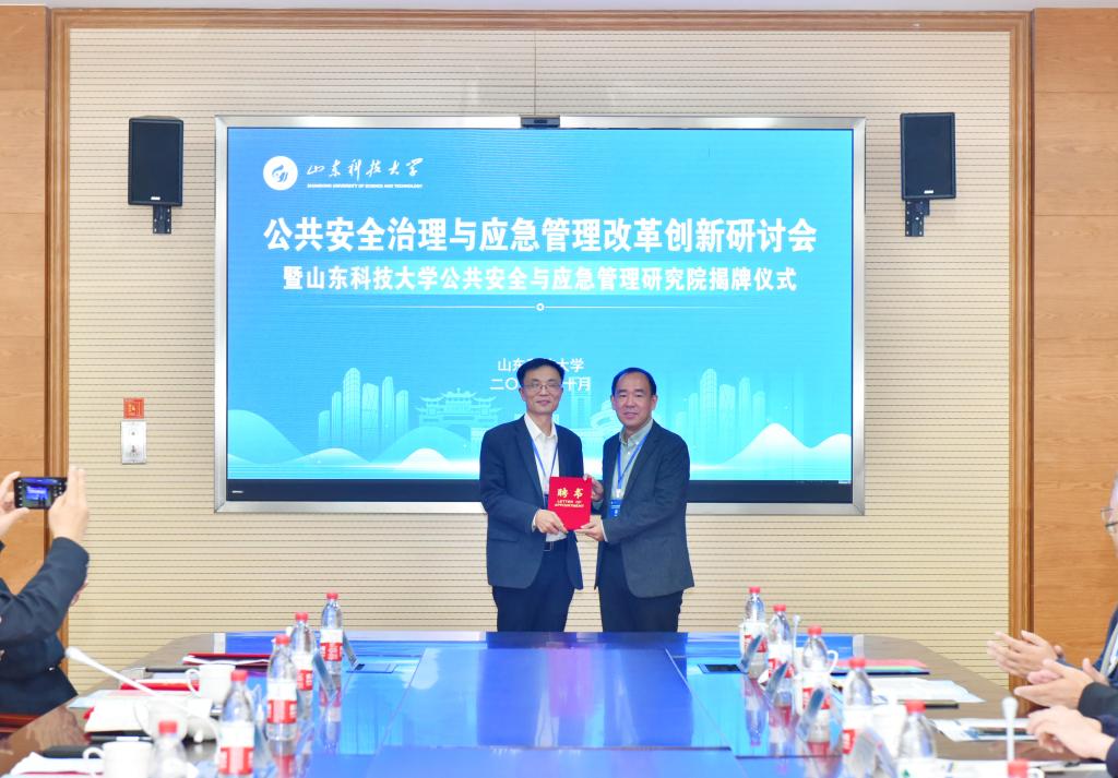 马宝成和曾庆田共同为8040威尼斯最佳登录公共安全与应急管理研究院揭牌。曾庆田向学校兼职教授及研究院院长、执行院长颁发了聘书。