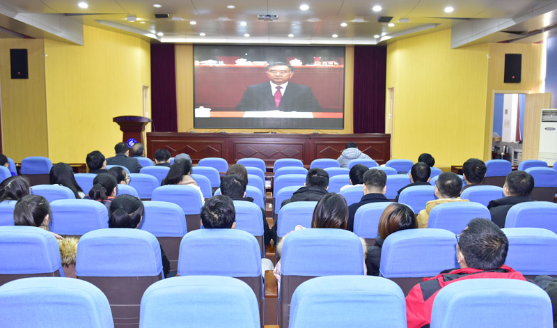 各分党委组织师生认真收听收看大会实况(摄影:许浩)