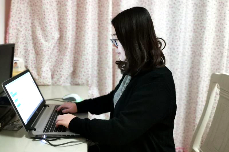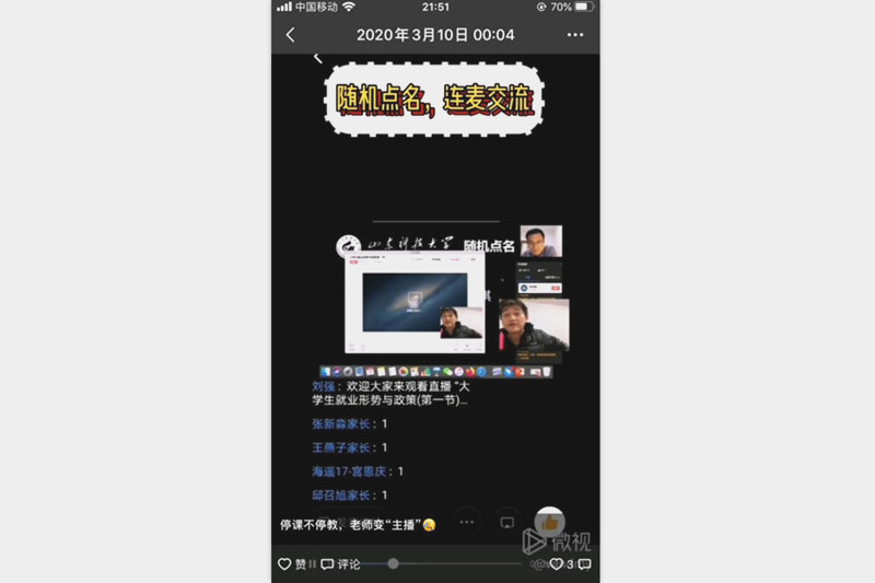 学生在家收看学校录制的就业知识视频